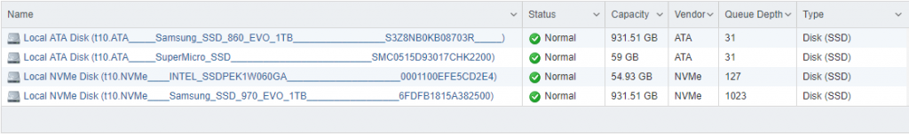 For the SDDC mobile lab it’s equipped with 4 E200-8D’s containing the following: